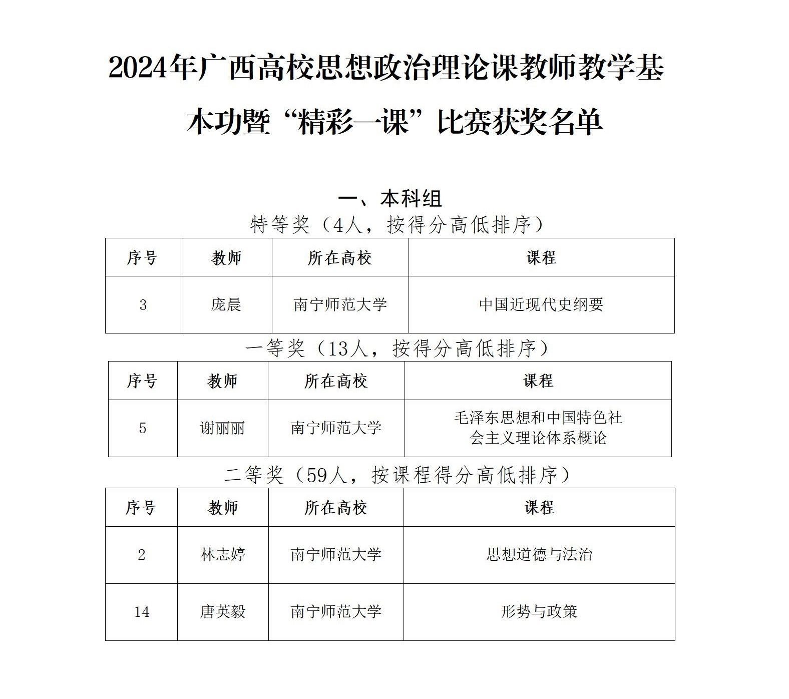 近日,自治区教育厅公布了2024年广西高校思想政治理论课教师教学基本功比赛暨“精彩一课”评选活动获奖名单,bv伟德国际1946官网教师庞晨荣获特等奖,谢丽丽荣获一等奖,林志婷、唐英毅荣获二等奖。