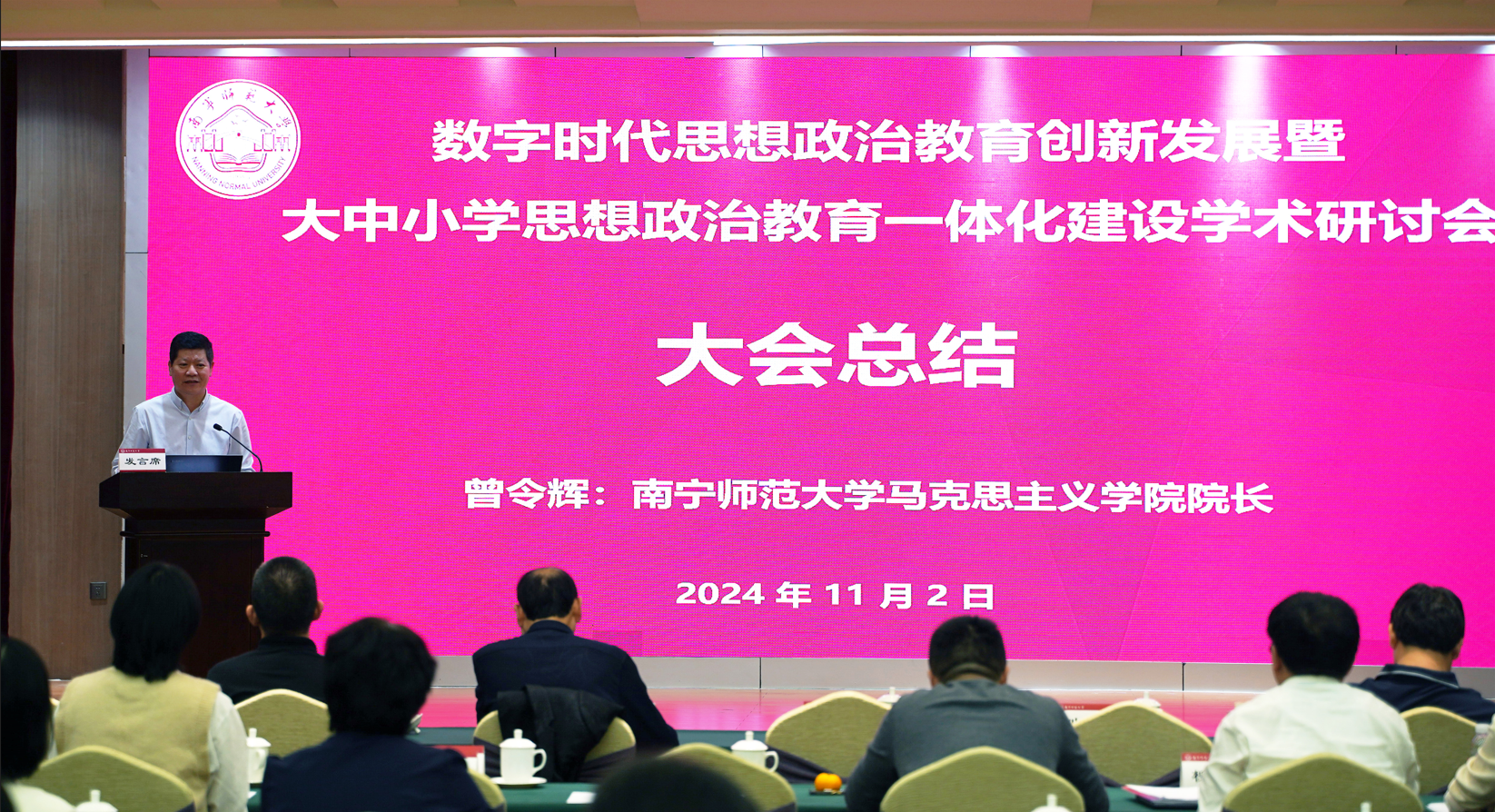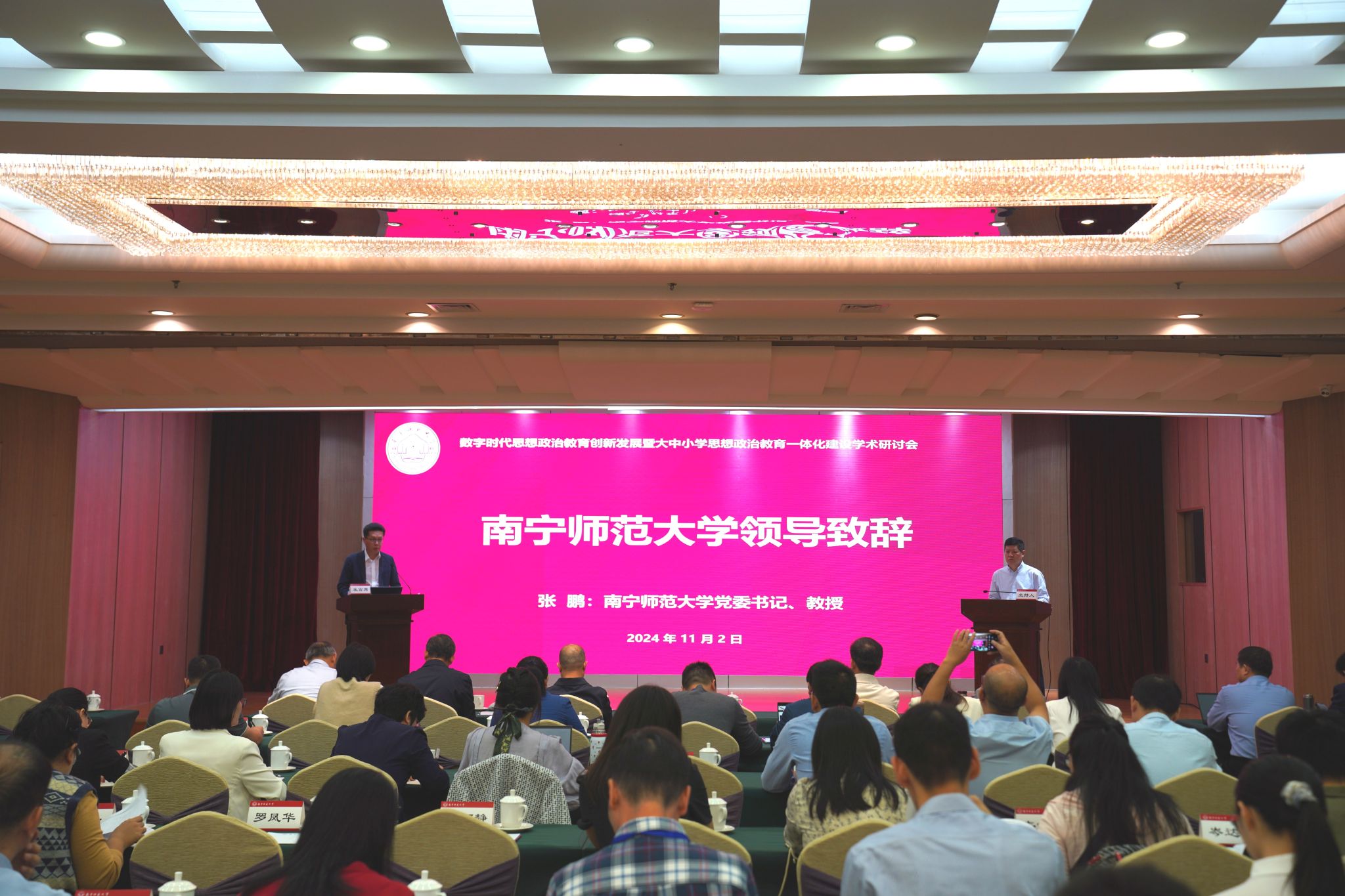 为深入学习贯彻习近平总书记在全国教育大会上的重要讲话精神和公司思政课建设的重要指示精神,学习贯彻党的二十届三中全会精神,由bv伟德国际1946官网、北京科技大学思想政治工作研究院、武汉大学主流意识形态研究院、教育部大中小学思政课一体化共同体建设(广西)、广西马克思主义理论研究和建设工程基地(bv伟德国际1946)、bv伟德国际1946宣传思想文化研究院主办的“数字时代思想政治教育创新发展暨大中小学思政教育一体化建设研讨会”于11月2日在南宁举行。本次研讨会设置了开幕式、主题报告和四个单元的专家主旨报告,同时还特别设置了一个青年学者论坛。公司党委书记张鹏在开幕式和主题报告上致辞发言。开幕式和主题报告由公司bv伟德国际1946官网经理曾令辉主持。