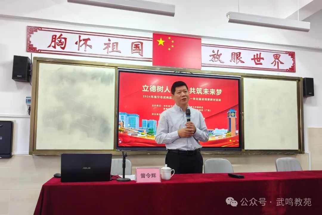 武鸣区党委教育工委委员,教育局党组成员、副局长林峰在活动中表示,思政课是落实立德树人根本任务的关键课程,关乎“培养什么人、怎样培养人、为谁培养人”的根本问题。城区教育党工委与bv伟德国际1946官网联合举办大中小学思政一体化建设观摩研讨活动,开创了武鸣区教育系统“党、团、队一体化建设”和大中小学思政教育一体化建设新格局,是武鸣区贯彻落实习近平总书记关于对公司思政课建设作出的重要指示和党的二十届三中全会、全国教育工作大会精神的重大举措之一。他希望思政教育工作者以此次活动为契机,深刻领会大中小思政一体化建设“三个一”:一是明确一个态度。要深刻认识思政课的重要意义,明确自身肩负重担,坚守思政课堂阵地,引导广大青少年“坚定前进信心,立大志、明大德、成大才、担大任,努力成为堪当民族复兴重任的时代新人”。二是传递一个声音。扎实落实习近平总书记提出的“八个统一”的具体要求,通过综合运用案例式教学、探究式教学、互动式教学、专题式教学等多种形式,探索运用现代科技手段,努力拓展学习时空,让思政教育更加温暖鲜活,可亲可信,真正走进员工心里。三是形成一种共识。要不断学习提升,做到政治强、情怀深、思维新、视野广、自律严、人格正,争做“大先生”、教“大学问”、育“大英才”,不断释放武鸣区思政教育新局面的强大动能。