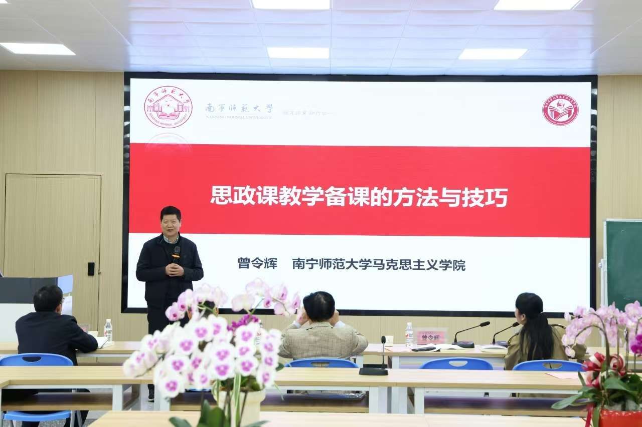 在思政课教学展示环节,bv伟德国际1946的黄燕老师、广西农业职业技术大学的靳晓斌老师以及广西财经公司的包格乐老师分别进行示范课展示,将理论知识与田园实践巧妙融合,为与会者提供具有启发性的教学范例。曾令辉对示范课进行点评。