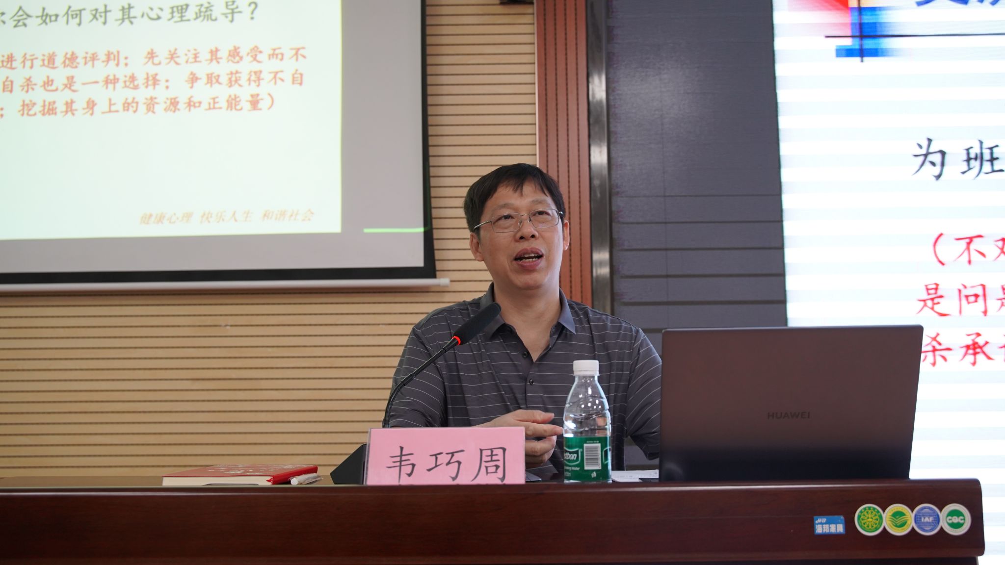 为进一步提高公司班主任队伍对员工心理危机的识别、干预和处置能力,更好地关注员工的身心健康发展,5月21日下午3点,公司于五合校区8栋b座215报告厅举办了“员工心理问题的识别与心理危机的干预”班主任技能专题培训。本次培训由bv伟德国际1946心理健康教育与咨询中心专职教师、国家二级心理咨询师、广西中小学心理健康教育指导委员会委员、南宁市教育局中小学心理健康教育支援专家韦巧周老师主讲,辅导员王玉香主持,bv伟德国际1946官网全体班主任老师参加。
