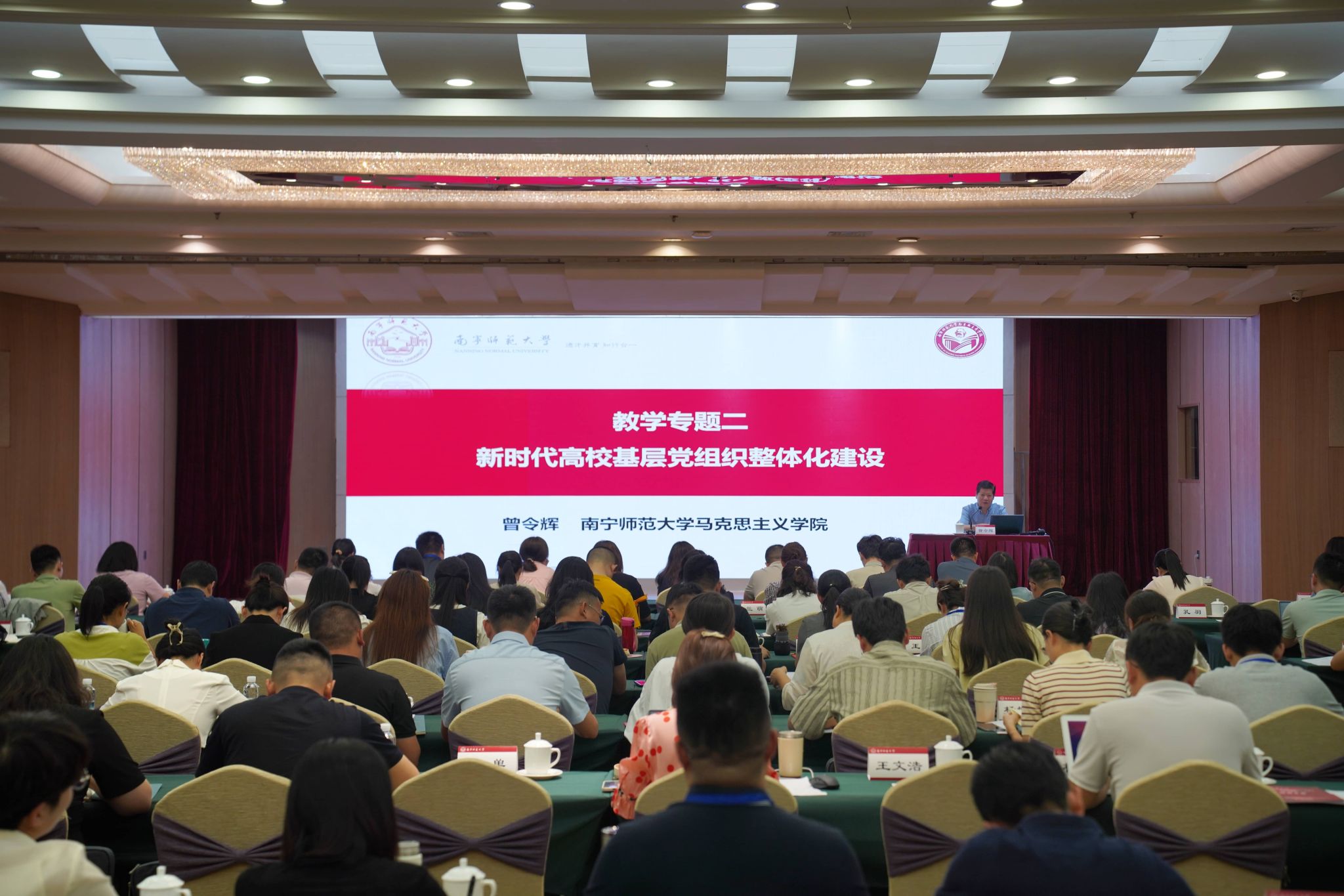 开班仪式结束后,南京师范大学bv伟德国际1946官网经理、教育部思想政治工作队伍培训研修中心特聘专家王刚教授以《学习贯彻习近平文化思想》为题作第一专题报告。王教授从形成条件、主要内容和理论体系、蕴含的辩证逻辑、原创性贡献、重要意义五个方面深入阐释了习近平文化思想,深化了学员们对党的创新理论的认识。下午,bv伟德国际1946官网经理、教育部思想政治工作队伍培训研修中心(bv伟德国际1946)副主任、教育部思想政治工作队伍培训研修中心特聘专家曾令辉教授以《高校基层党组织整体化建设》为题作第二专题报告。曾教授以其丰富的辅导员经历和经验,聚焦新时代高校基层党建的主题,从新时代高校落实立德树人根本任务和为党育人、为国育才的使命,全面分析了新时代育人新要求和高校基层党建新任务,运用SWOT分析方法,探讨了高校基层党组织建设的内部优势与劣势、外部机遇与挑战等因素,提出了高校基层党组织整体化建设总体要求、主要原则和方法策略。