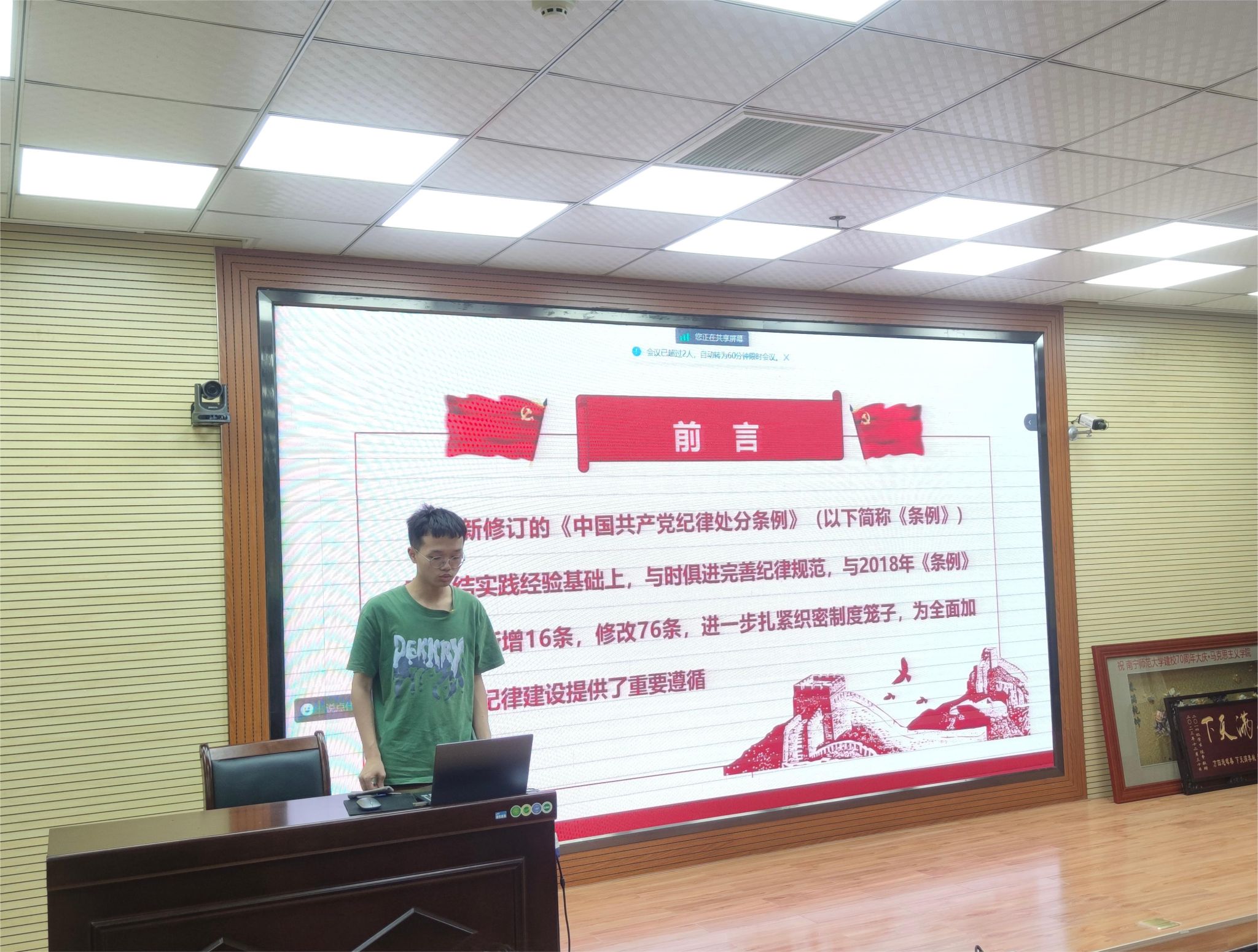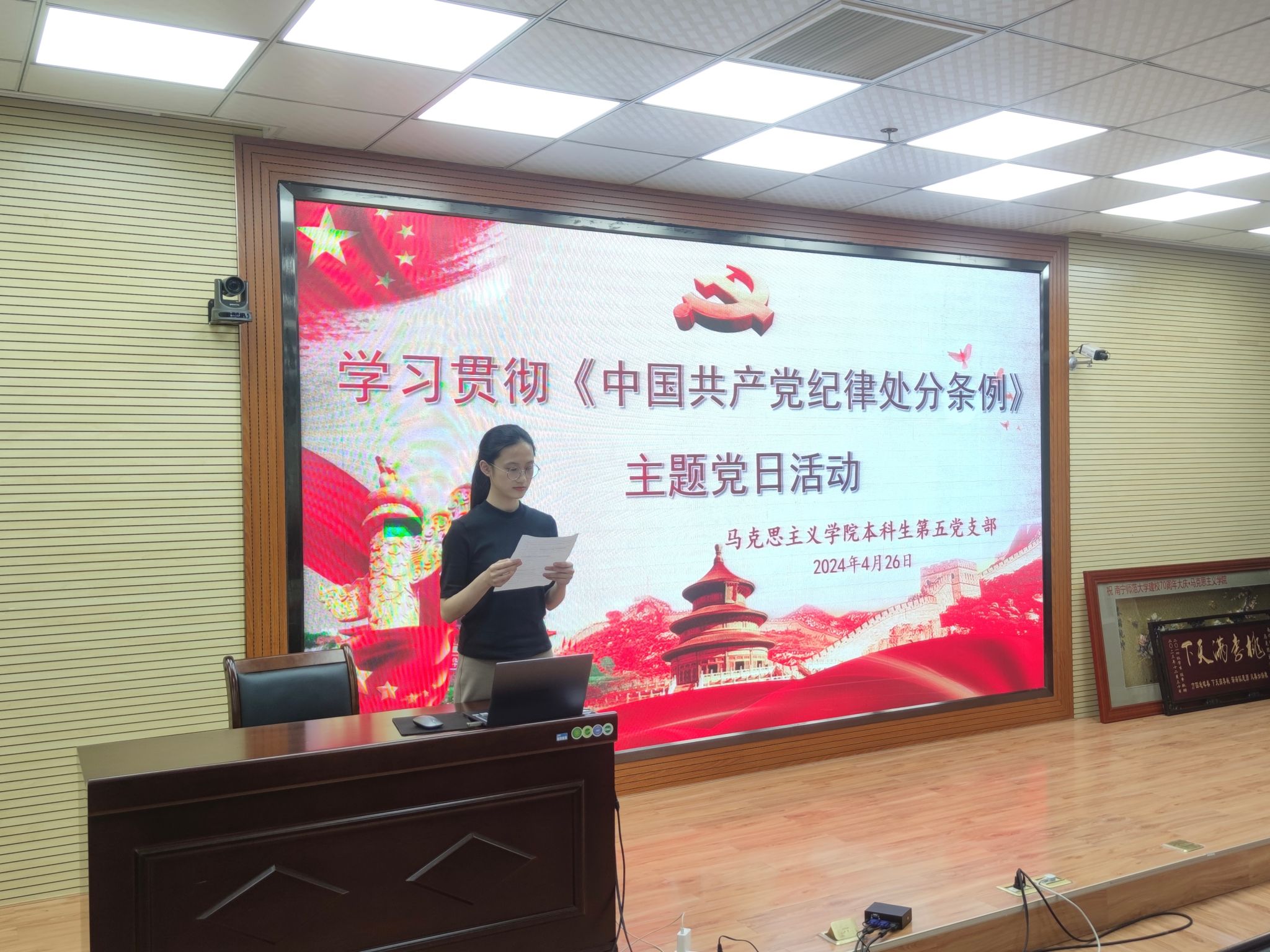 为深入学习贯彻落实习近平总书记关于党纪学习教育的重要讲话和重要指示精神,深入、系统、扎实学习新修订的《中国共产党纪律处分条例》(以下简称《条例》),2024年4月26日,bv伟德国际1946官网本科生第五党支部在五合校区八栋B座215报告厅开展了预备党员转正大会暨“学习贯彻《中国共产党纪律处分条例》”专题党课学习会,党支部全体党员参加了本次会议,会议由支部副书记覃芳琳主持。